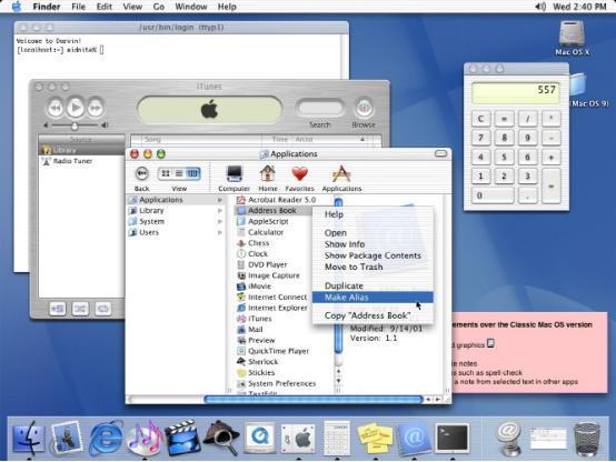 在OS X之前,1999年发布的Mac OS 9看起来就是一个普通的桌面操作系统。并且现在已经被粉丝们亲切的称为“经典”Mac OS。它是Mac OS 8和Mac OS X之间的过渡版本,后来乔布斯在一次发布会上穿上了为Mac OS 9的“葬礼”准备的黑色西装,以后苹果就停止了OS 9。