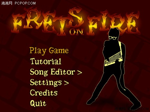 [/align] Assembly Demo Party 2006的赢家,Frets on Fire是Unreal Voodoo开发的以完成音乐和视频的游戏。玩家像弹吉它一样的来用键盘,更随着屏幕上滚动的音乐乐谱来完成任务。一只手用来按‘frets’ (F1 to F5)另一只按‘picks’ (Shift or Enter)。通过按‘frets’来播放那些着色的标记,按‘picks’来掌握准确的。游戏中也有音乐编译和指南。Frets on Fire是自由开源软件。它用Python开发,且基于GPL发布,某些代码通过其他自由协议发布。但是它其中的歌曲和字体是私有的,所以不可以再发布。